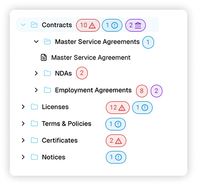 Gain complete visibility into your company’s legal posture - from enterprise level down to every document.