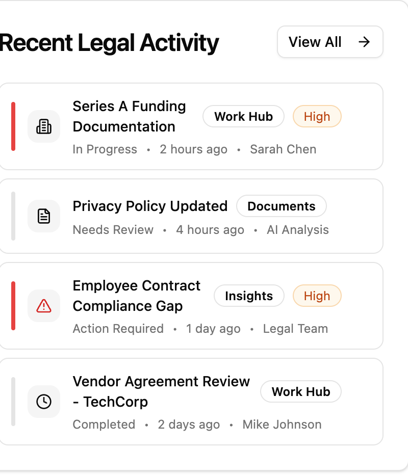 Gain complete visibility into your company’s legal posture - from enterprise level down to every document.